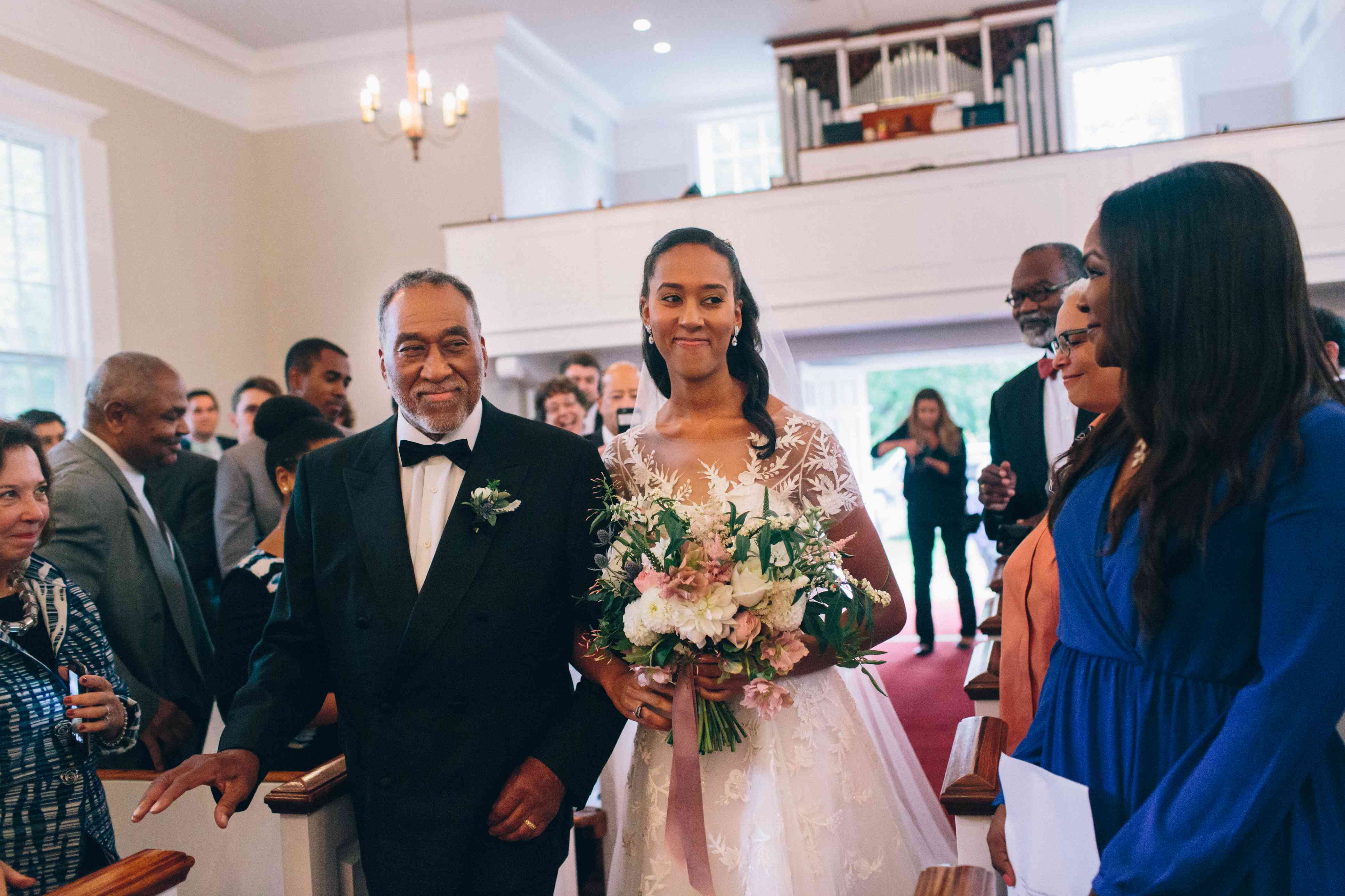 Kalila和她的父亲走过婚礼甬道,一个“黎高冬舞曲”安德烈Campra执行。个性化他们的仪式上,新娘和新郎结合与传统的誓言他们写道,让朋友和家人阅读诗歌的段落和经文。