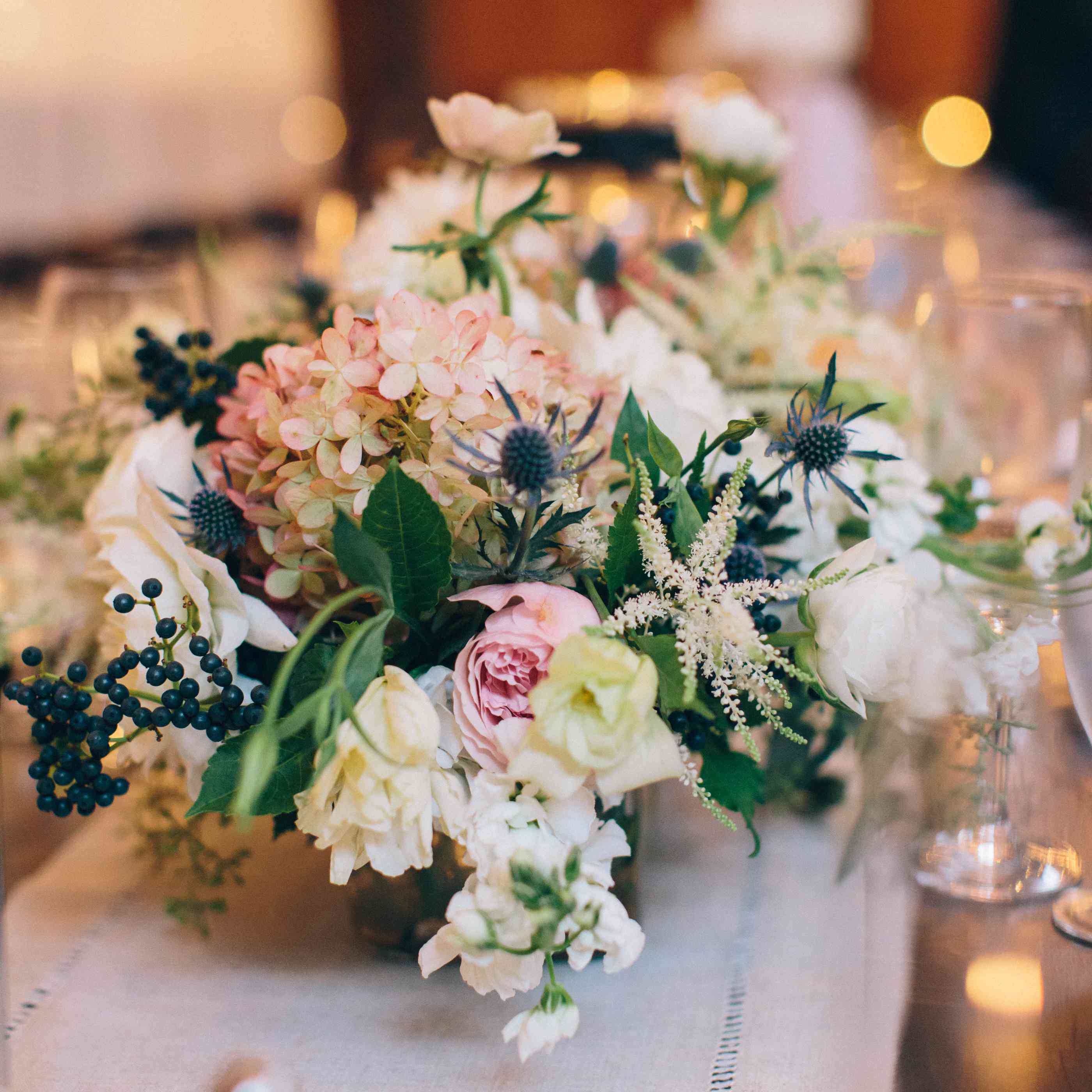 符合他们的视力的一个简单的、优雅的庆典,新娘和新郎选择长木接待表和命名后的每一个位置在玛莎葡萄园岛。随着米色跑步者,Kalila和她的母亲选择了花低安排的玫瑰,绣球花,大丽花,蓟和sand-filled灯笼作为他们庆祝的收尾工作。