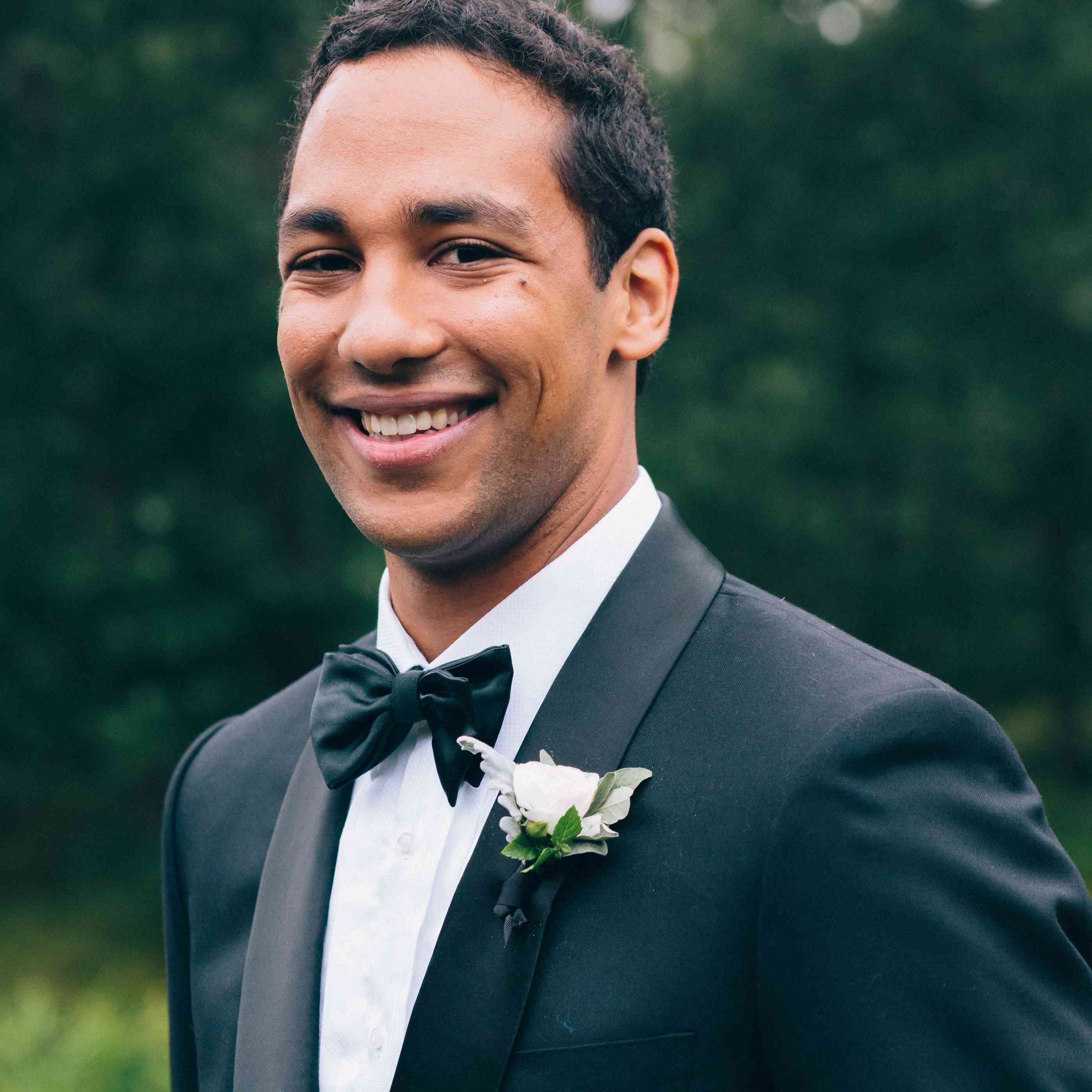 Kalila和大卫都很重要,他们的婚礼感到舒适的服装,它并没有打破银行。所以新娘问她的伴娘选择一件她喜欢,穿了。获胜者?深蓝色礼服从Amsale纯粹的高领口。大卫的服务员穿着自己的黑色西装搭配Canali匹配关系。