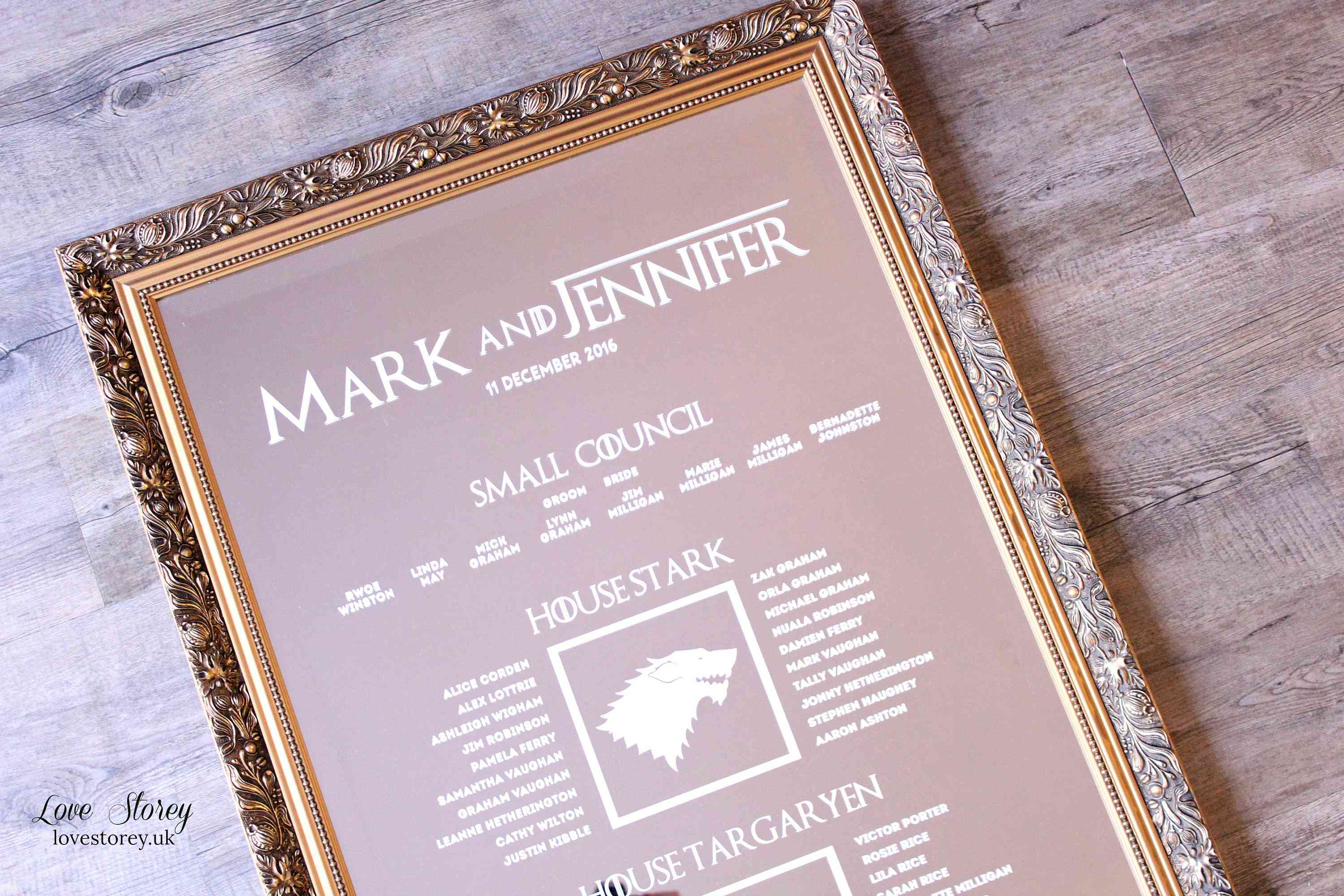 将您的客人划分为各自的房屋,ERM,表格权力的游戏如出一辙的座位图表。(我们特别喜欢对你的小议会/新娘聚会大喊大叫。)当乙烯基到达时,简单地把它粘在一个镀金镜子的玻璃和voilà。