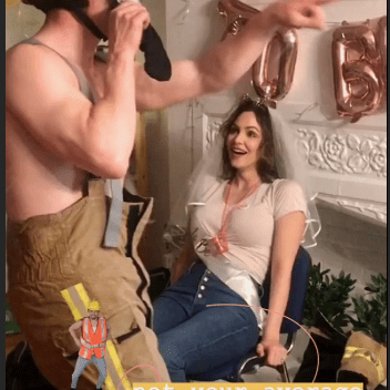 在这个惊喜的夜晚,周围都是赤膊消防员和“准新娘”气球,凯瑟琳McPhee离步入婚姻殿堂又近了一步