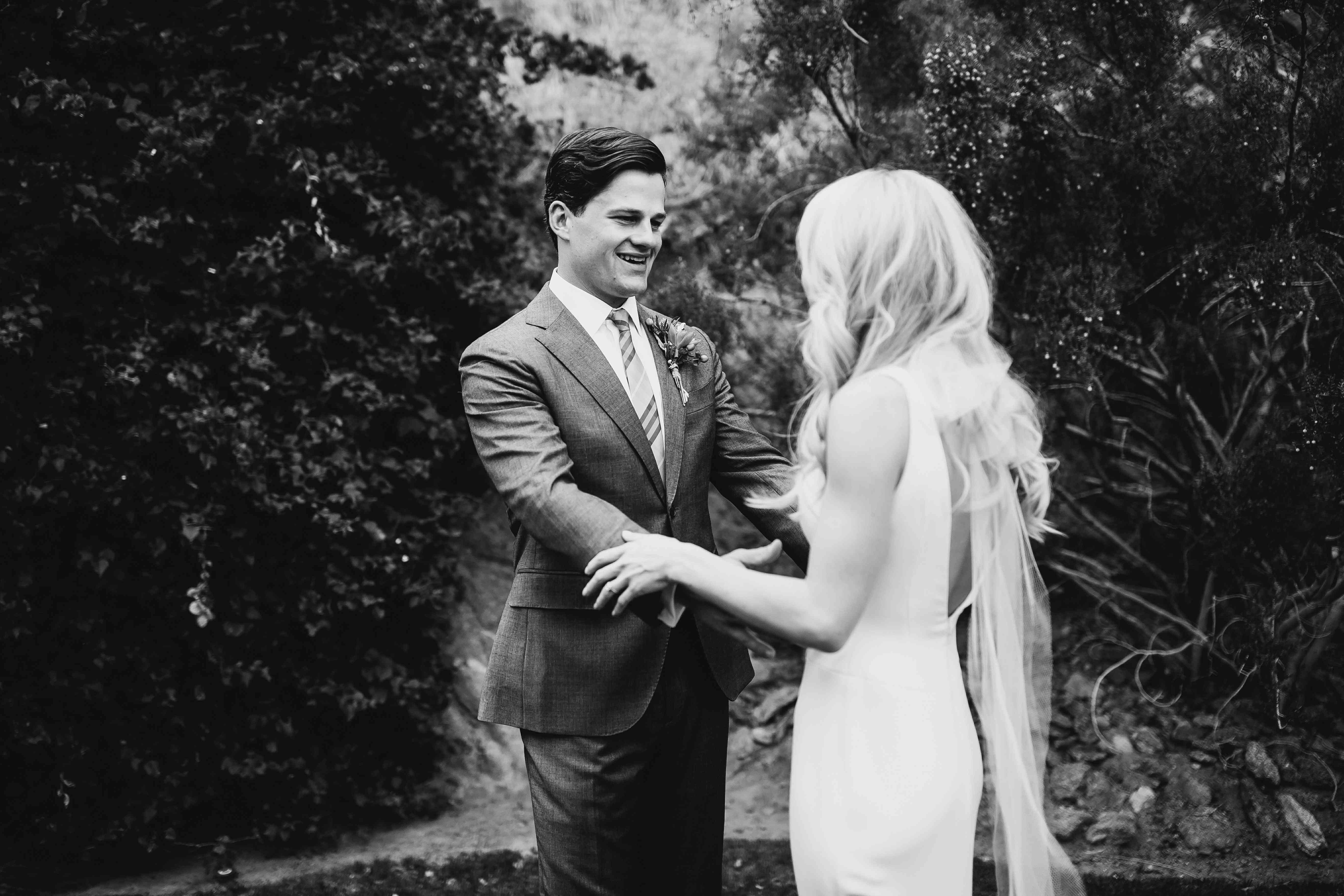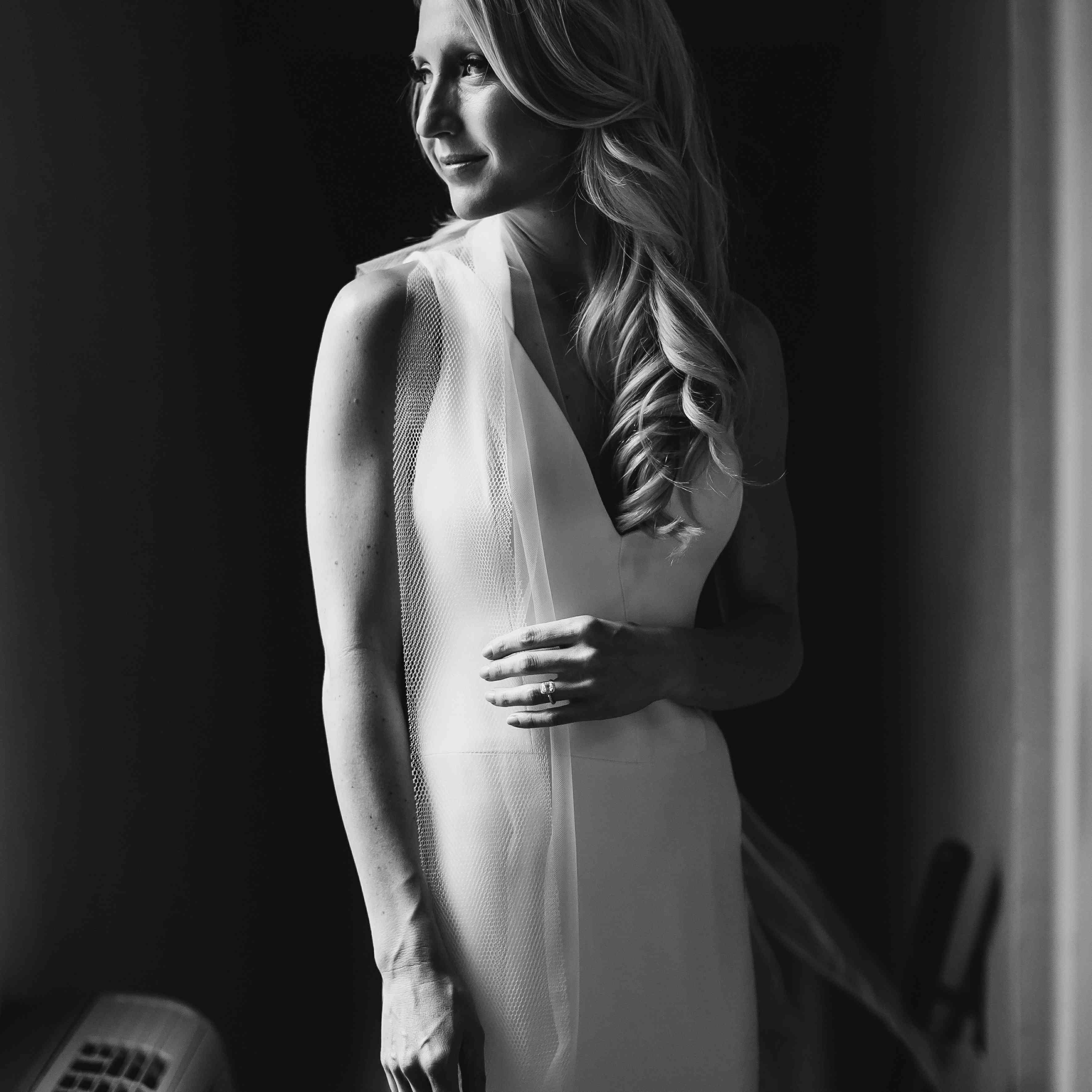 凯特琳是内曼·马库斯百货公司的助理采购员,所以她充分利用了这次购物经历。“从7月到8月的每个周末,我都和不同的朋友约好去沙龙,”新娘说。“我希望这种体验既轻松又有趣,所以我想尽可能多地试穿衣服,看看自己喜欢什么,不喜欢什么。她也知道没有任何压力:“9月份我和妈妈计划了一次旅行,我确信那时我们会找到我的裙子。”“而她做到了!”凯特琳爱上了一件简单的象牙v领吊带礼服by王薇薇,颈部有双吊带,裙摆上有丝绸欧根纱花瓣。她没有戴面纱,而是在颈部用一个可拆卸的透明硬纱蝴蝶结装饰了礼服。