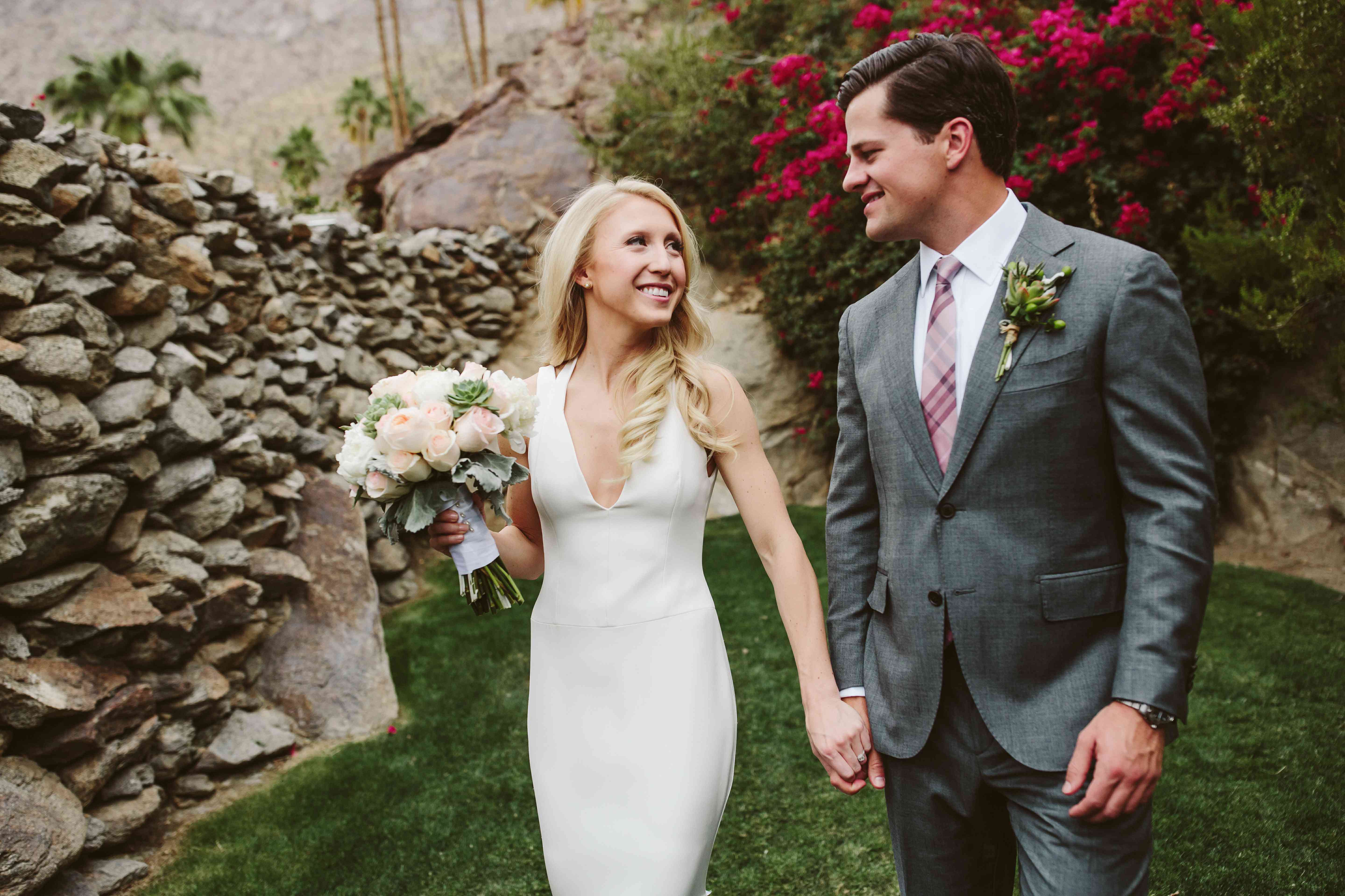 他们花了不到一年的时间计划2016年4月30日,棕榈泉的婚礼那里有桃红色的日落、仙人掌、和沙漠环境作为他们的灵感。当这个大日子到来的时候,115名宾客和新郎新娘一起来到了奥唐纳大厦。奥唐纳大厦是一座20世纪20年代的标志性建筑,坐落在城市的高处,提供了许多隐私和美丽的风景。悠闲的氛围和多肉植物塞进每个角落,你会喜欢这个婚礼的加州凉爽的大气,由妮可Leever摄影。
