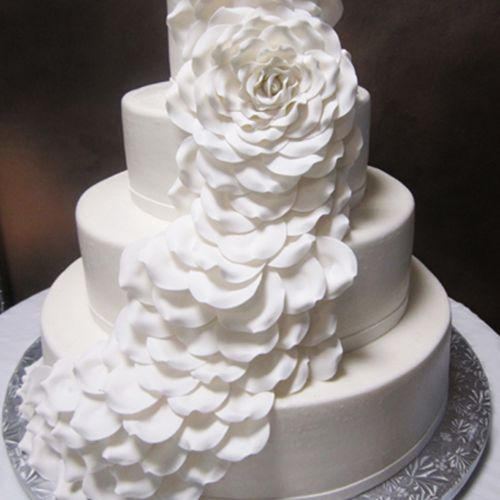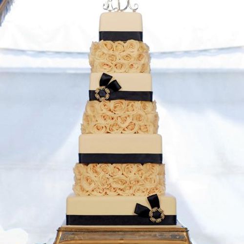 The boutique bakery has a way of crafting a cake that completely blends in with your wedding's theme, incorporating accents from the color scheme to the invitations into a cake just as elegant as the bride to be.