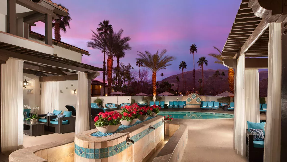 在加州的拉斯帕尔马斯度假村的Omni Rancho Las Palmas Resort & Spa,夫妇可以享受沙漠隐居夫妻套餐在私人治疗室进行50或80分钟的治疗,你不会错过度假村的风景山景。