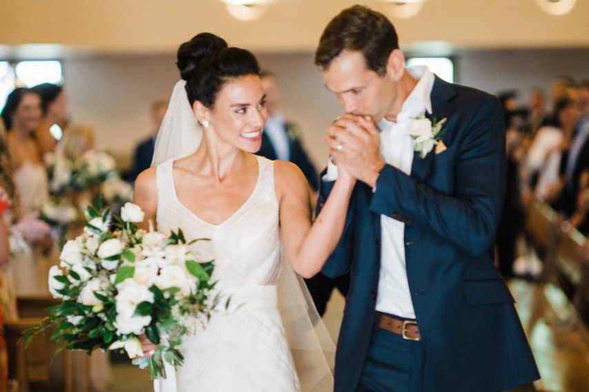TAO Group的设计总监苏珊•努格拉哈(Susan Nugraha)和伊莱•克莱恩画廊(Eli Klein Gallery)的所有者和创始人伊莱•克莱恩(Eli Klein)约会了两年,后来伊莱想出了一个大计划,打算在纽约市的安田寿司店(Sushi Yasuda)向苏珊求婚。苏珊说:“我们去吃晚饭的路上顺道去了他母亲的公寓,当我在浴室时,他给她看了戒指。”她说服他就在她的客厅里求婚!第二天,伊莱的母亲被诊断出癌症晚期,不久就去世了。虽然这可能是一段不同寻常的回忆,但这是他们非常珍惜的一段回忆。“如果我们都做一遍,我们不会改变这种特殊的夜晚的一个细节,”新娘说。