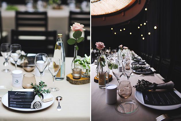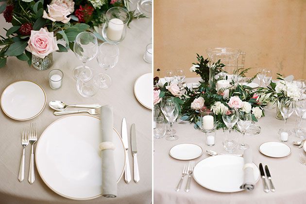 里面,空间的盛大建筑才需要额外的装饰,但新娘和新郎确实在一个拖尾的桃红色窗帘上加入了一个主要的门口,为浪漫,一个细节amélie说她一直在梦想许久。在画廊的错综复杂的圆顶下供应午餐,因此长长的桌子装饰着单一玫瑰茎的简单布置,芽花瓶。
