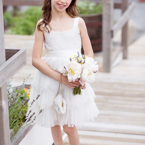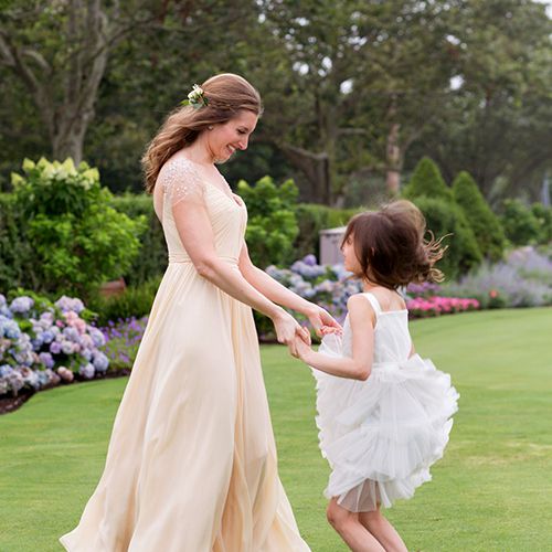 安娜选择了一个苍白的杏子礼服reemacra.,落下流动的雪纺裙和非传统设计。“它变得漂亮了,”她说。“我用各种颜色和六菱调情,但这一个让我觉得自己像一个希腊女神。”安装的肌腱用晶体镶嵌的薄纱袖盖,触及魅力。她的花束,一个宽松的白玫瑰,牡丹和洋甘菊,用桃玫瑰和薰衣草小树枝打刻。安娜的女儿,Lila,穿着白色的薄纱连衣裙和缀饰的公寓,并携带较小的淡粉色和白色牡丹排列。