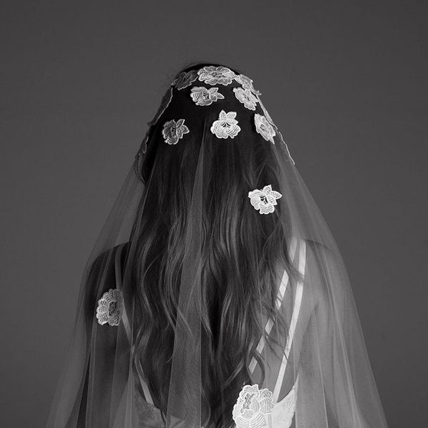只要你的礼服没有太多的背部细节,你可以用任何类型的头纱搭配长裙,霍尔告诉我们。然而,他最喜欢的是大教堂的面纱。“这太有趣了,创造了一个戏剧性的,空灵的外观。”