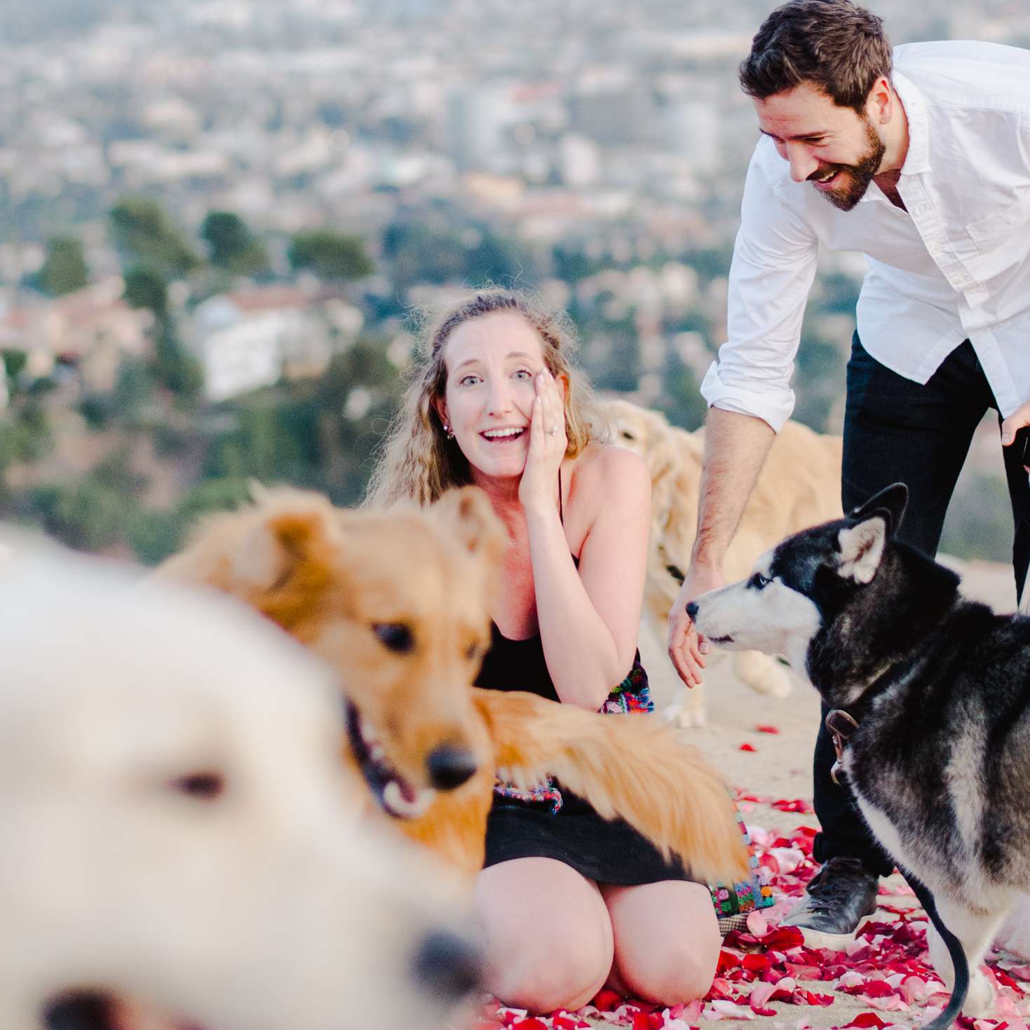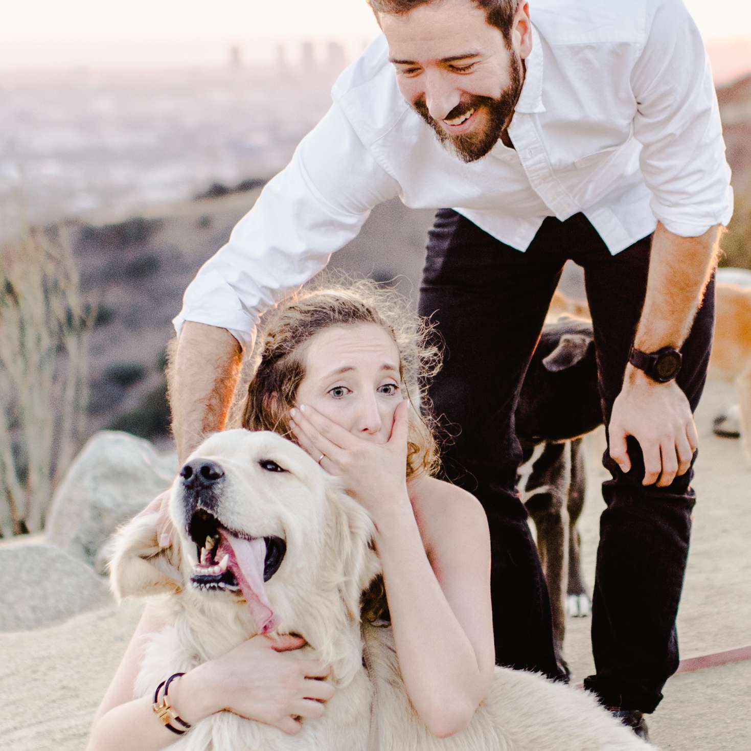 劳拉说,她含泪的是,16个doggos突然出现,围绕劳拉和莫里斯兴奋地运行。这是最后的惊喜莫里斯已经为这个如此完美 - 我们-哭提议,幼崽的包准备发布,礼貌红心包,祝贺他与草率亲吻未婚妻新。因为狗>鸽子,效果显着。“我无法想象还有什么更神奇,”劳拉说。