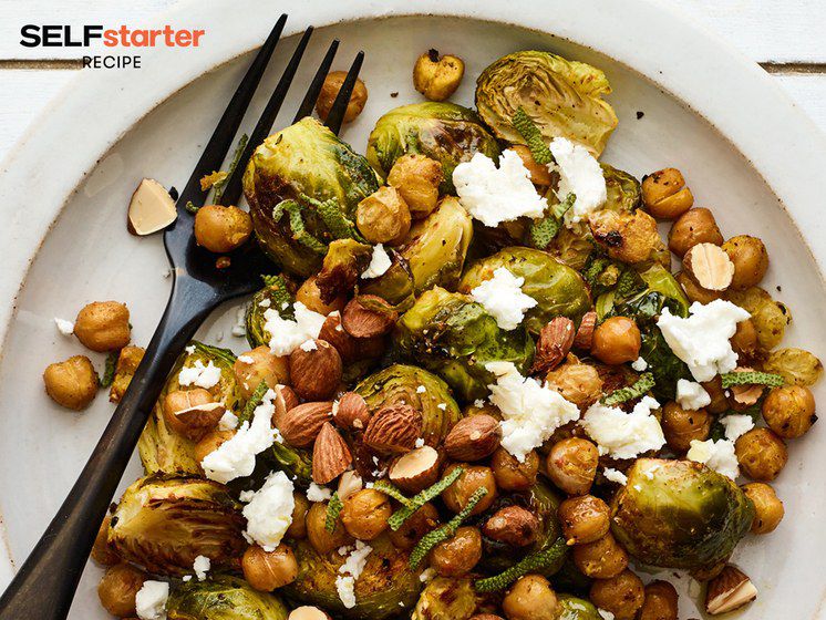 烤球芽甘蓝和鹰嘴豆沙拉