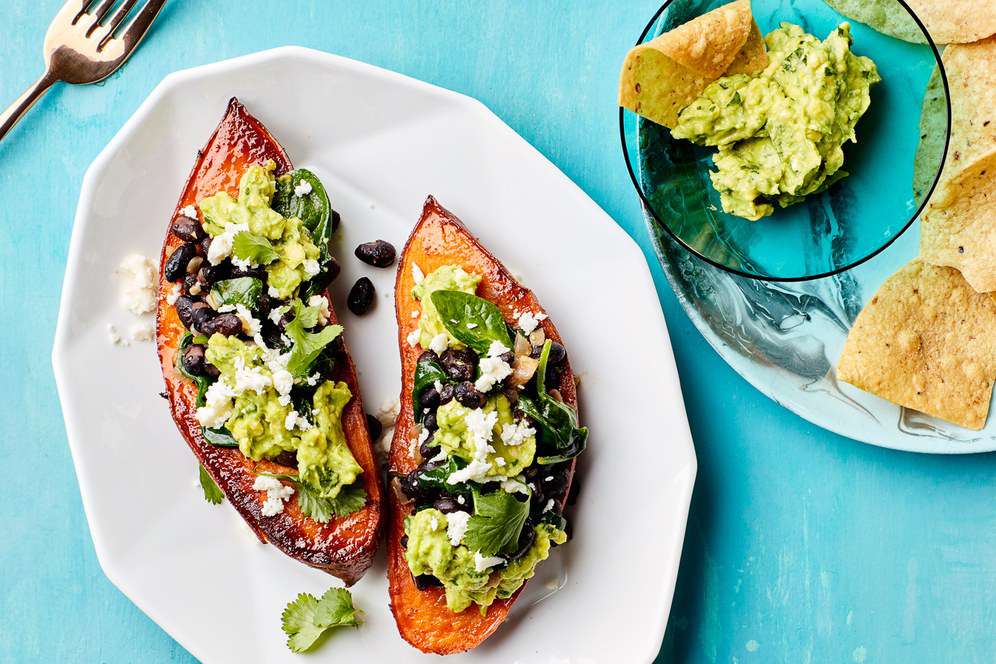 现在这只是一个简单的建议,通过吃甜土豆来获得美味的营养——你在里面放什么都可以!我们还喜欢在甘薯里填上松脆的羽衣甘蓝、希腊酸奶、黑豆、烤南瓜子和一些墨西哥干酪。可口!