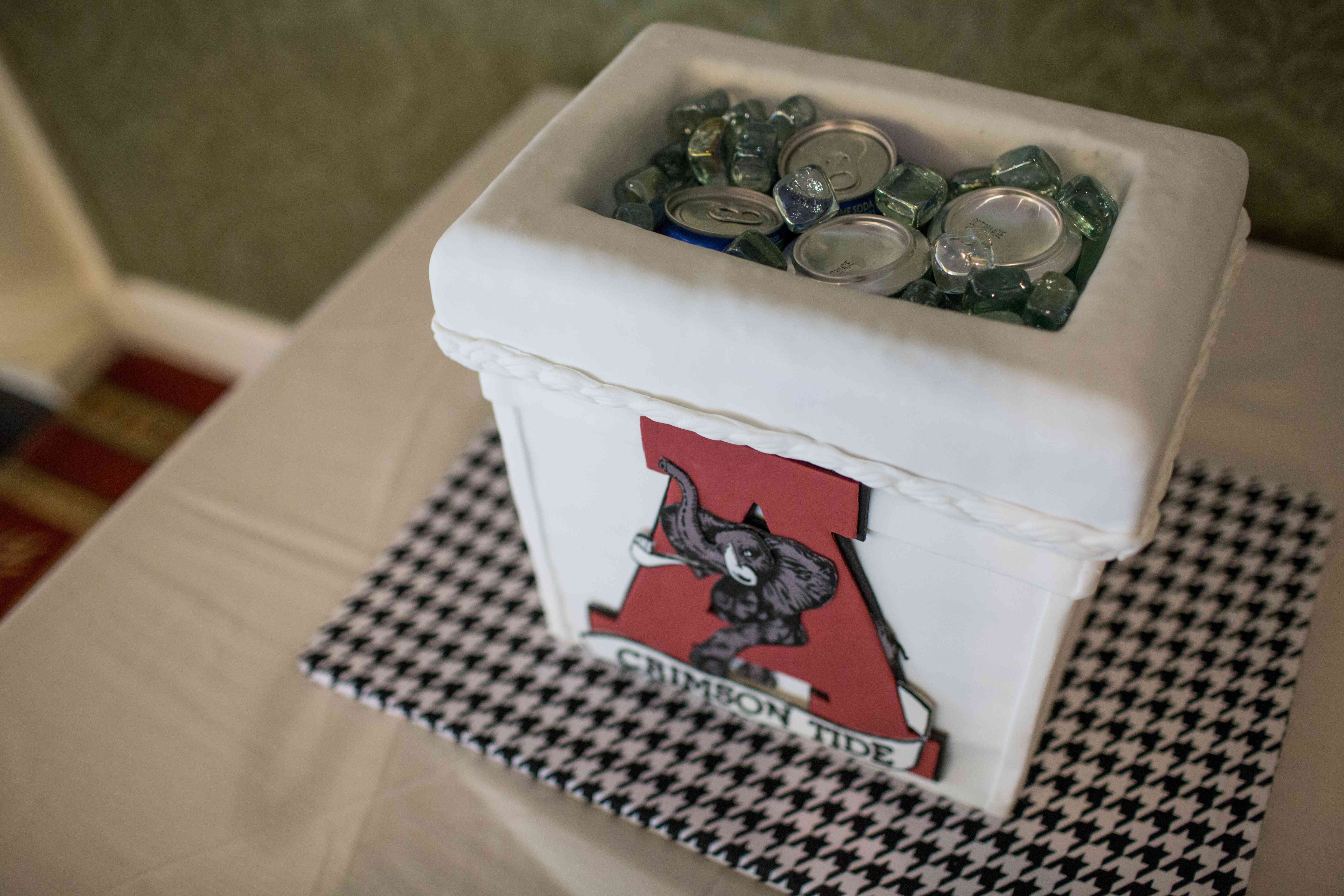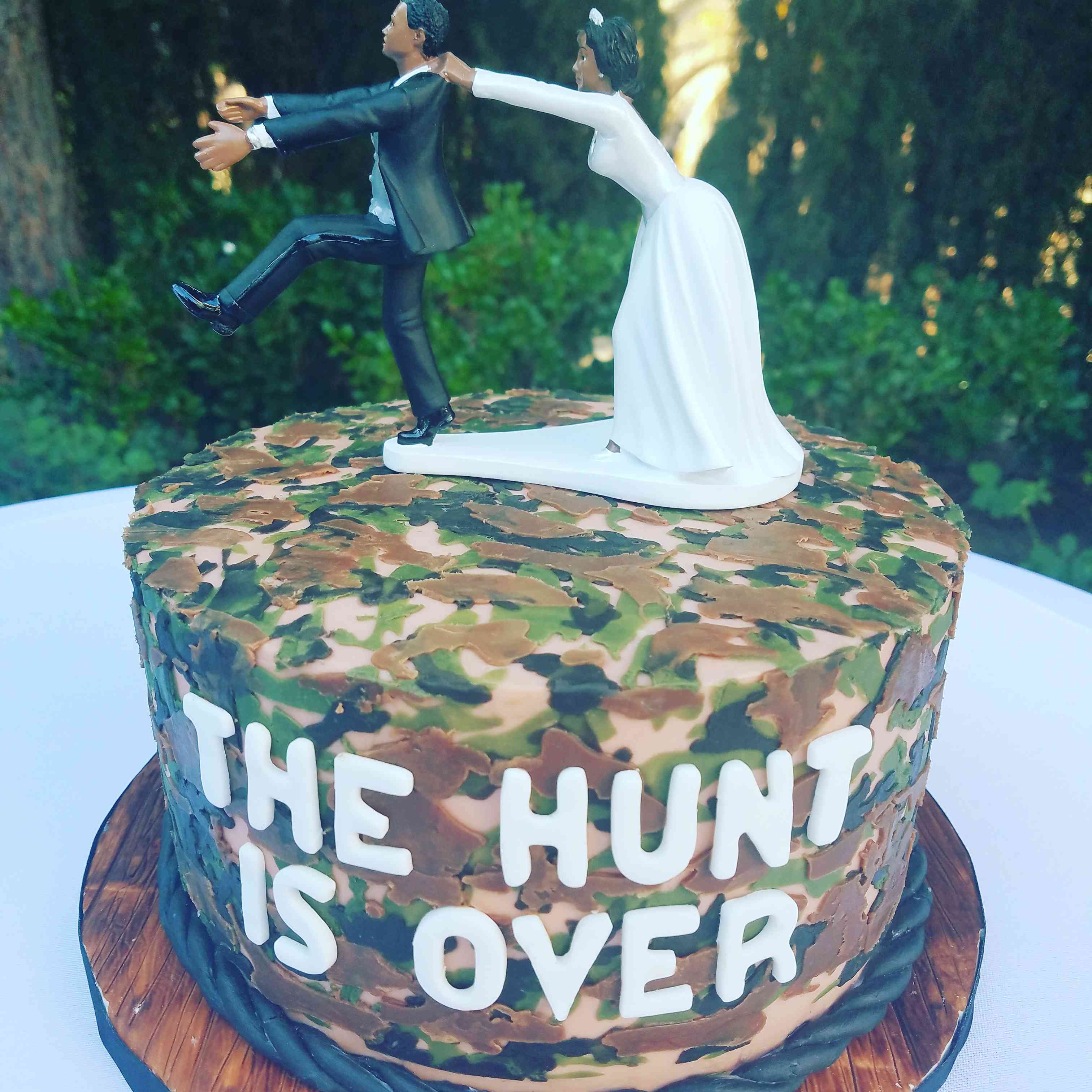 The groom's cake can range from a chocolate replica of a sports arena to an edible homage to星球大战。它通常呈现给新郎从他的新婚妻子的礼物。