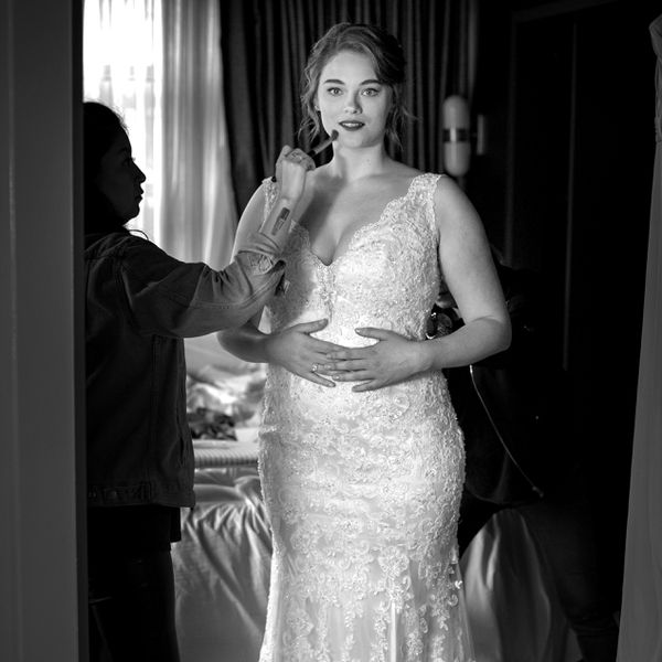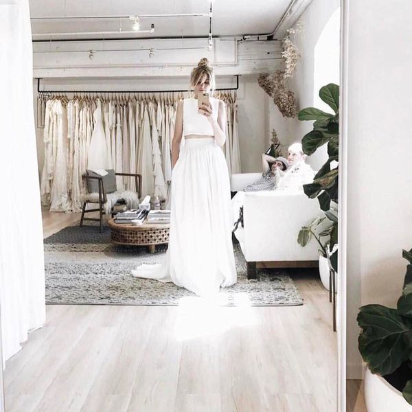 像婚礼策划的许多方面,对于购物bet188体育手机端结婚礼服按计划已经不完全不见了。也许[我已看过狂欢我的梦幻婚纱更喜欢比我承认,也许我见过伴娘太多次。无论如何,我一直设想具有“这是一个!”那一刻我的旁边最亲密的朋友和家人。I’d be at a sparkly, decadent bridal boutique—meticulously decorated in blush and champagne tones, of course—in front of a three-way mirror as my mom and BFFs looked on, gawking at whatever tulle mermaid sweetheart lace confection I had fallen for.
